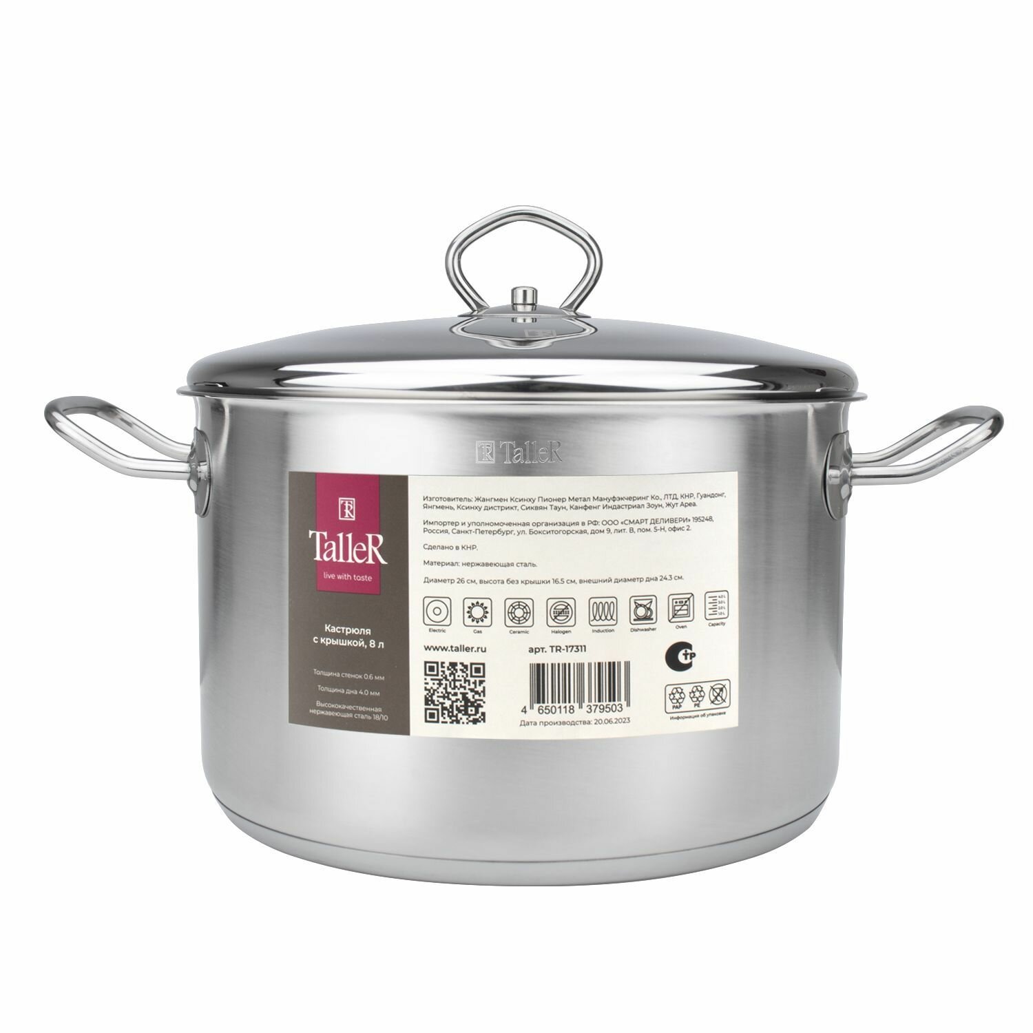 Кастрюля для всех типов плит с крышкой TalleR TR-17310 6.5 л, нержавеющая сталь