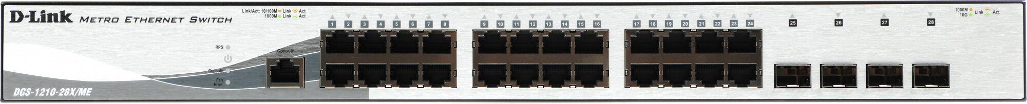 Управляемый коммутатор D-Link DGS-1210-28X/ME/B1B 2 уровня с 24 портами 10/100/1000Base-T и 4 портами 10GBase-X SFP+
