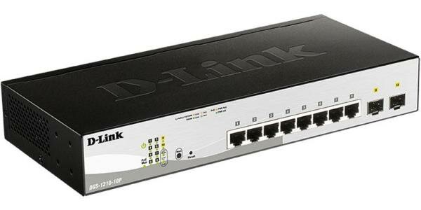 D-Link SMB Сетевое оборудование D-Link DGS-1210-10P/F1A Настраиваемый коммутатор Web Smart с 8 портами 10/100/1000Base-T с поддержкой PoE и 2 портами 1000Base-X SFP