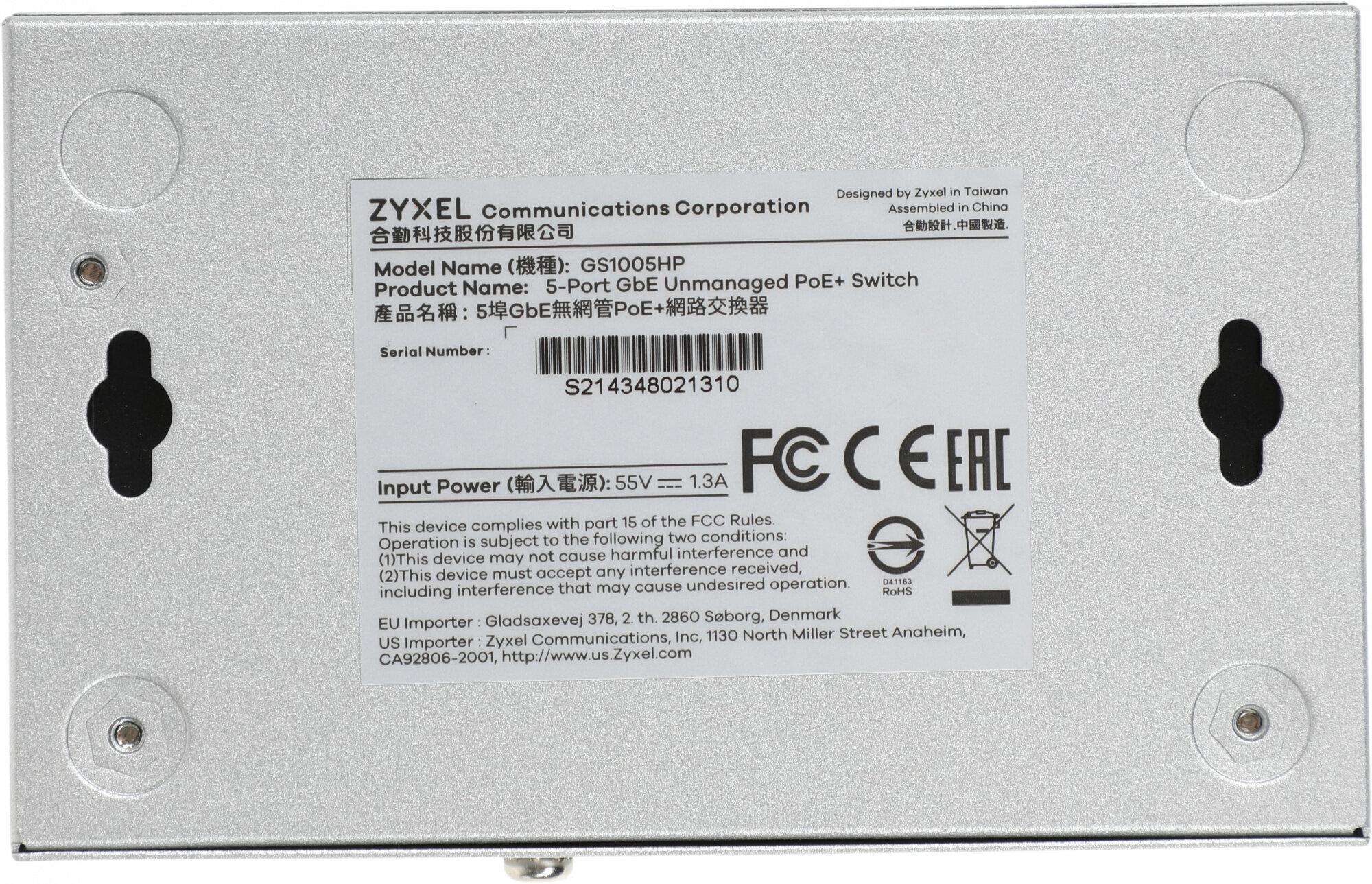 Коммутатор ZYXEL GS1005HP, неуправляемый [gs1005hp-eu0101f]