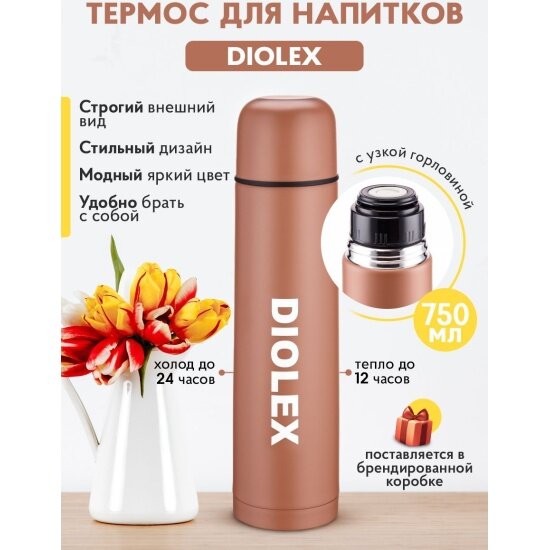 Термос Diolex Dx-750-2c какао 750 мл с узким горлом Dx-750-2c, какао .