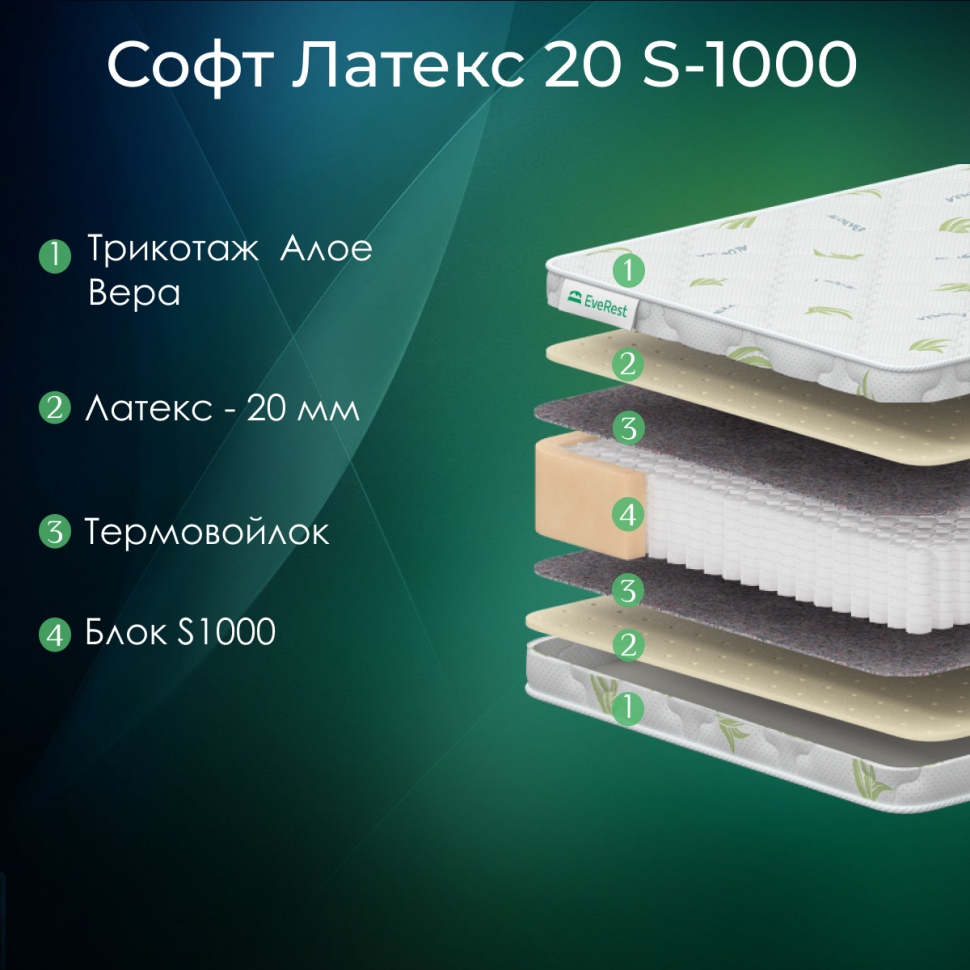 Матрас Everest Софт Латекс 20 S-1000 90х180 см, независимый пружинный блок S1000, трикотажный чехол Aloe Vera