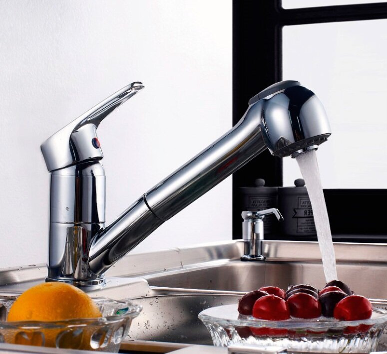 Смеситель Rossinka D40-25 для кухни с вытяжным изливом, хром