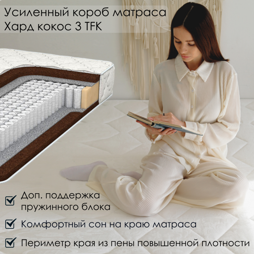 Матрас Everest Хард Кокос 3 TFK - самый жесткий, пружинный, высокий 21 см, независимые пружины 500 штук на спальное место 195х210