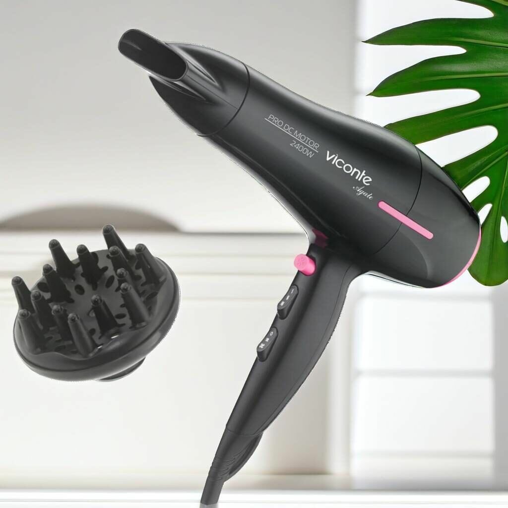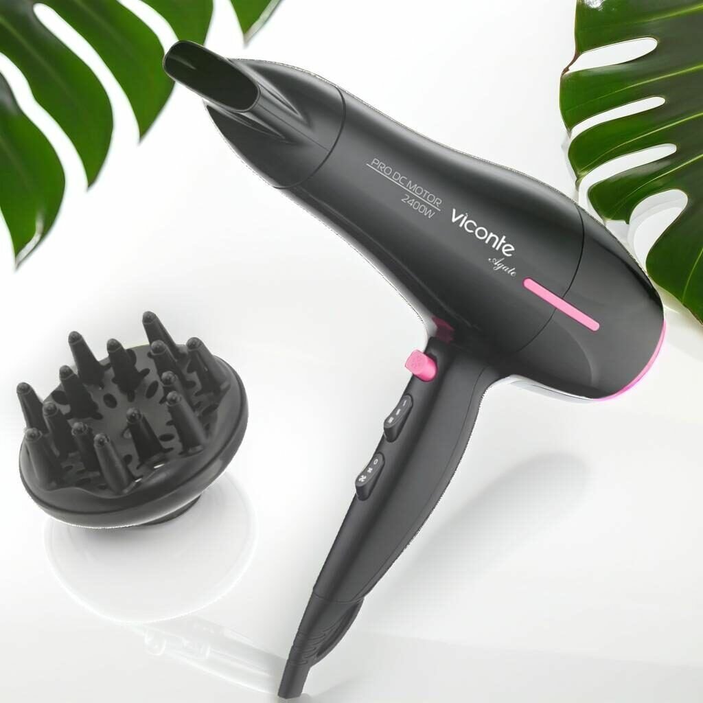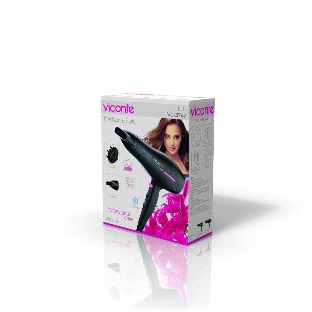Фен для волос Viconte 2400 Вт для сушки и укладки с насадками диффузор и концентратор