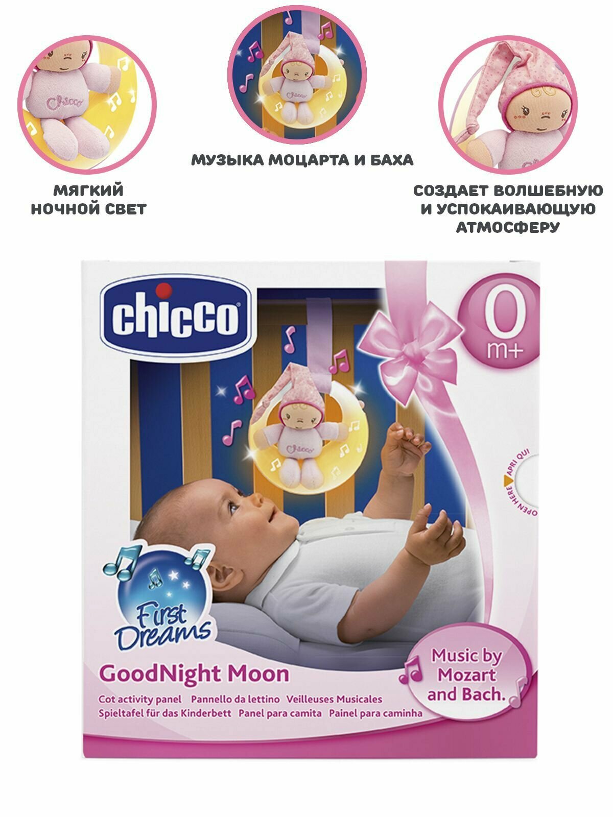 Подвесная игрушка Chicco Луна Спокойной ночи, 0 мес+, розовый