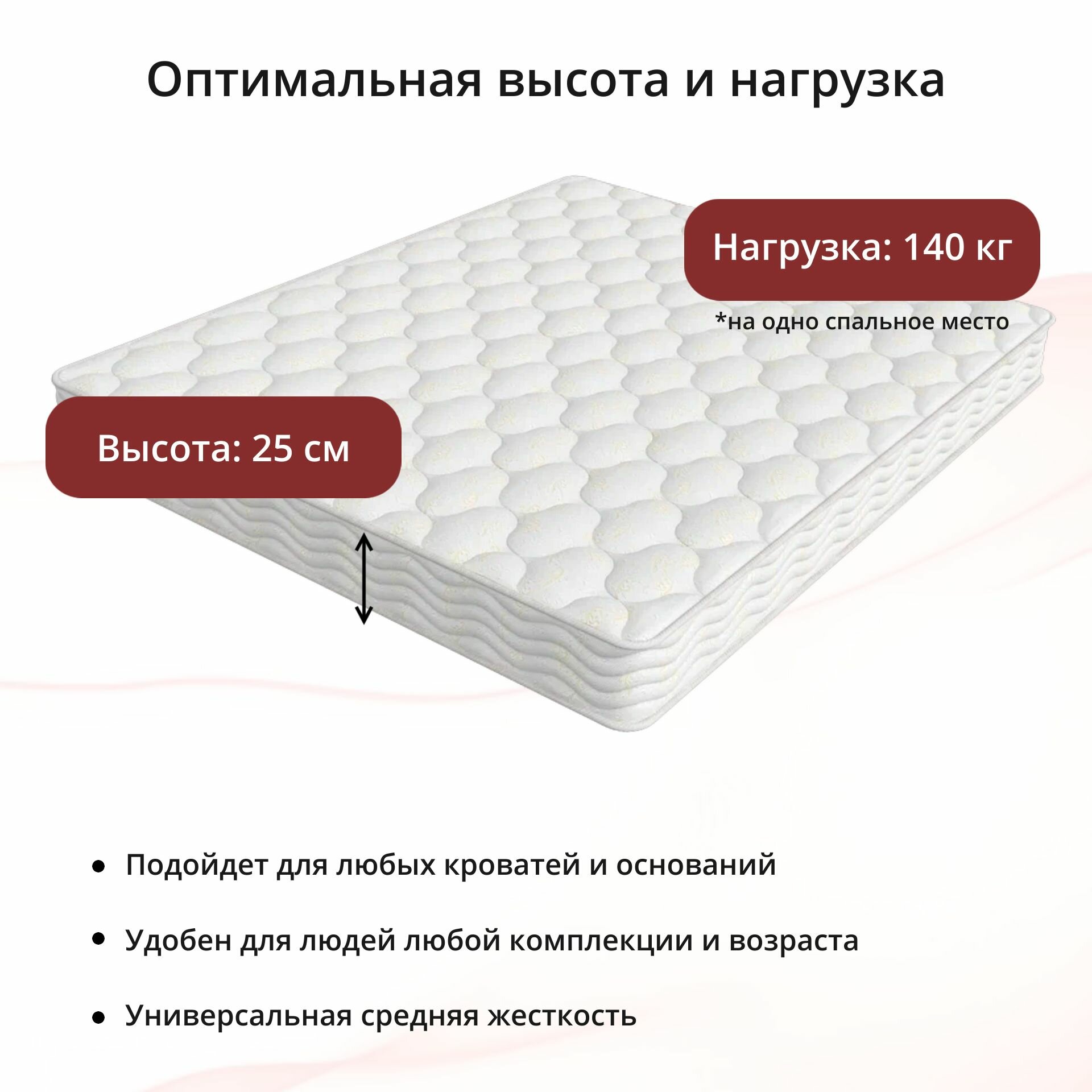 | Плюсы: | Отлично выдерживает вес 140 кг. Пружины не чувствуются, спать на нем одно удовольствие. |