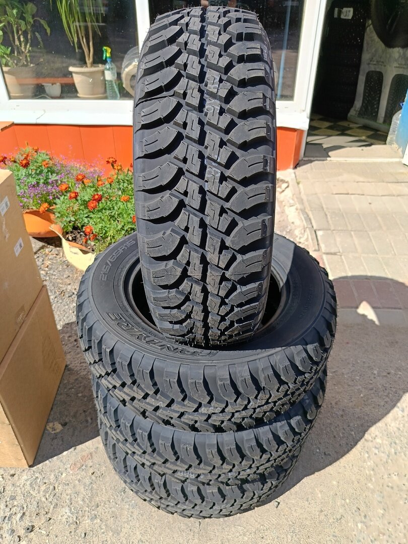 | Отзыв: | Установил в начале апреля на Дастер в стандартном размере 215х65хR16 на литье. Отбалансировались с максимальным грузом 20г. Для МТ это очень мало. По асфальту шумит где то до 40 км/ч. далее не слышно. На скорости до 120 км/ч глубокие лужи проезжает хорошо, аквапланирование отсутствует. По грязи гребет неплохо.