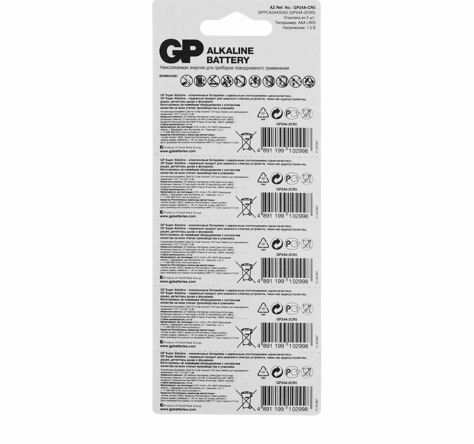 Купить Батарейки GP 24A-2CR5 Alkaline AAA 5шт