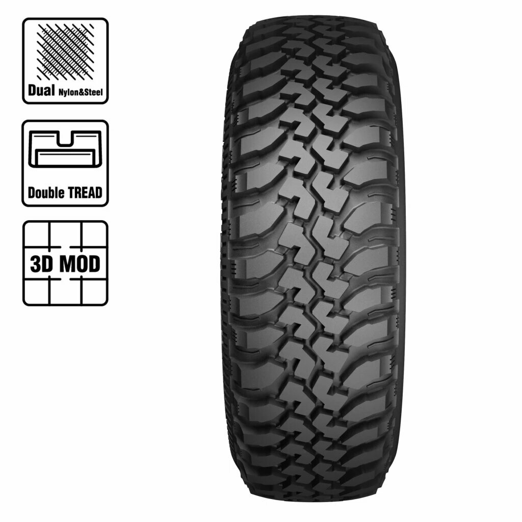 | Отзыв: | Честно прошли свои 50 тыс. км, пережили северные скальники, мокрые болота и раскисшие проселки. Корд очень прочный. Вытаскивал из протектора куски арматуры, шина оставалась целой. Балансировались очень неплохо. На глинистых грунтах спускал до 0.8 бар, плющились и ехали нормально. Из минусов выделю только высокую шумность и вес. К гулу на асфальте пришлось привыкать. Как и к повышенному расходу топлива из-за тяжести шин. Но в целом как универсальный вариант резина неплохая. Тем более если сравнивать цену с мт-шками для спортивного оффроуда. |