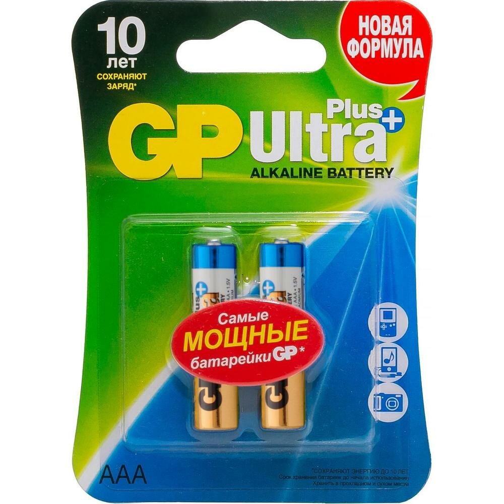 Батарейка алкалиновая GP Ultra Plus, AAA, LR03-2BL, 1.5В, блистер, 2 шт., 2 штуки