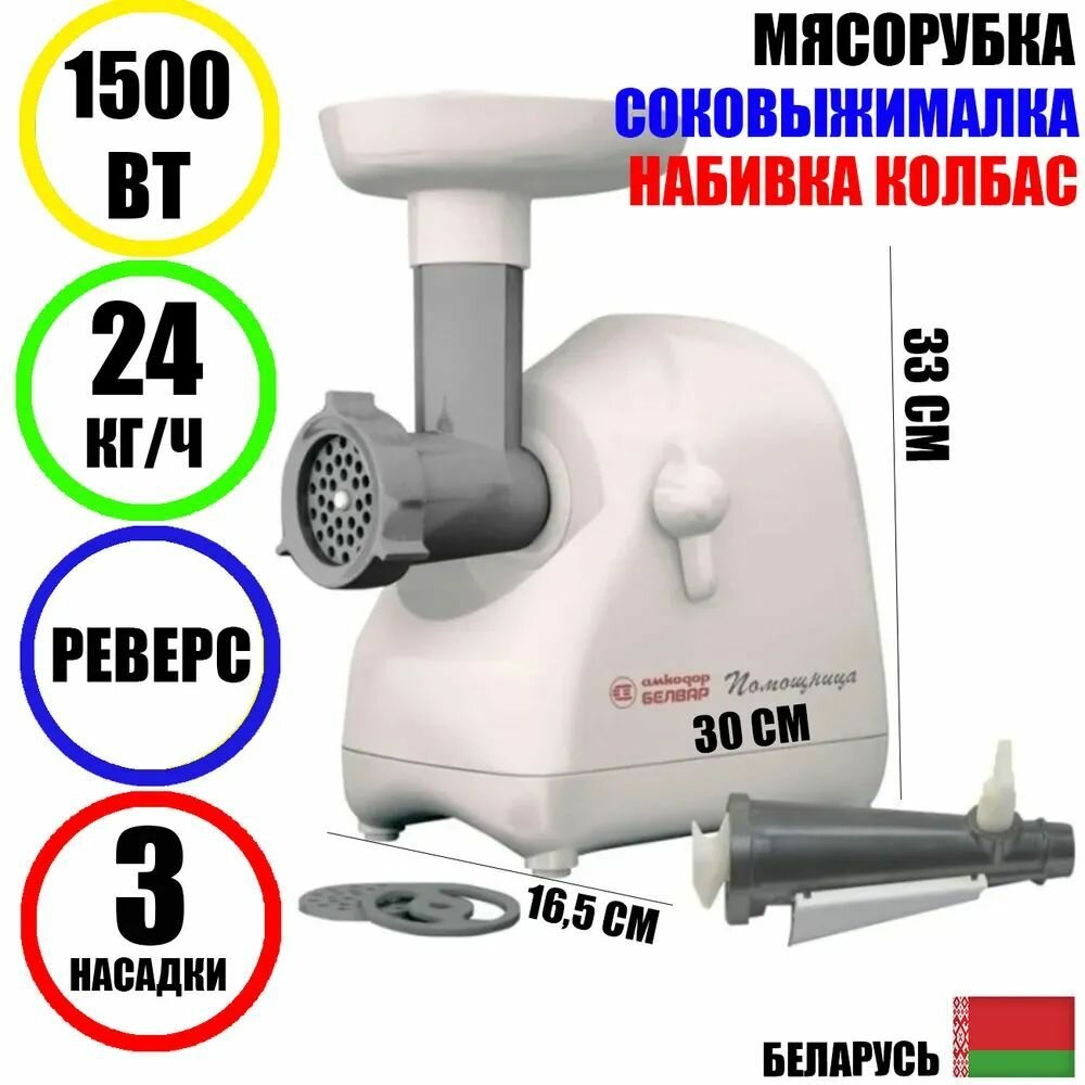 Мясорубка Белвар Помощница КЭМ-П2У 302-10 с соковыжималкой, 1500Вт, реверс