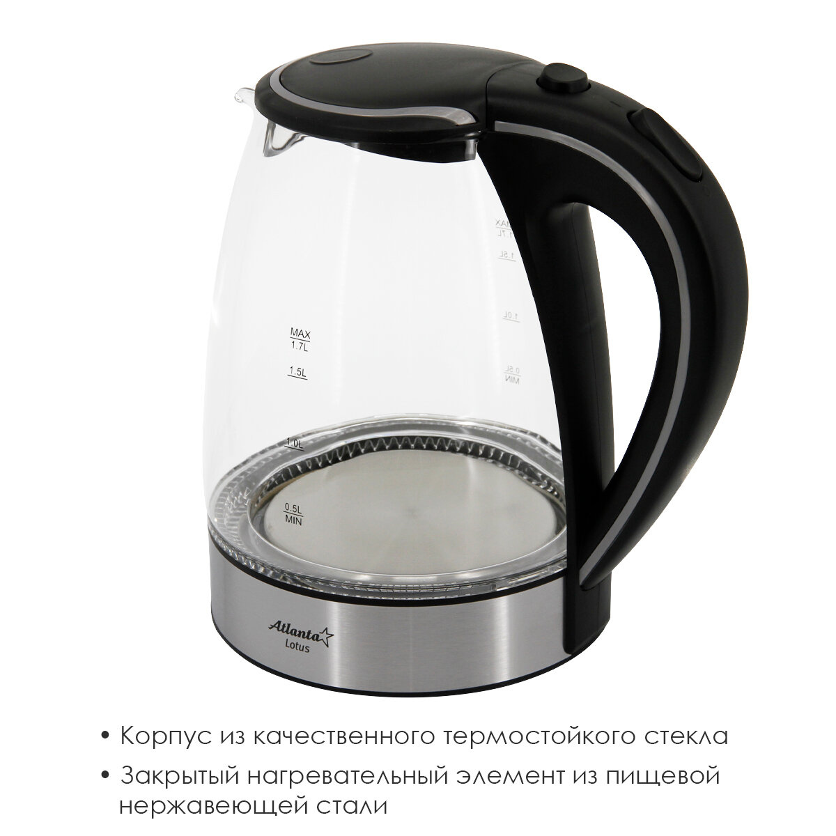 Atlanta Чайник стеклянный электрический ATH-691 black .