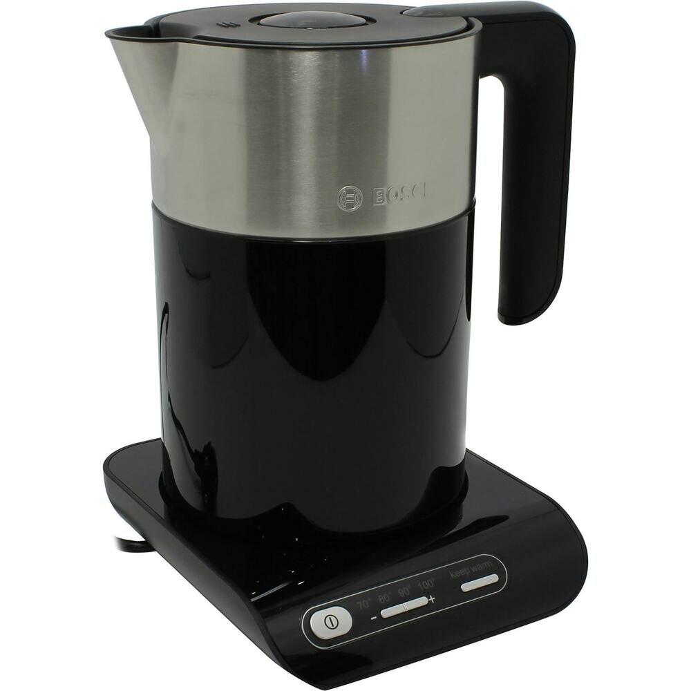 Bosch TWK8613P Чайник, 2400Вт, черно-серебристый, терморегулятор