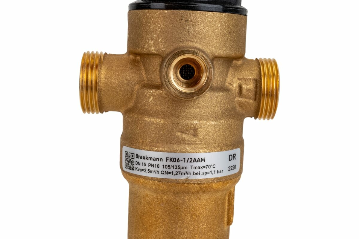 FK06-AAM Фильтр для воды механической очистки с регулятором давления Honeywell Resideo Braukmann FK06-AAM муфтовый (НР/НР), латунь, со сливом Ду 15 (1/2")