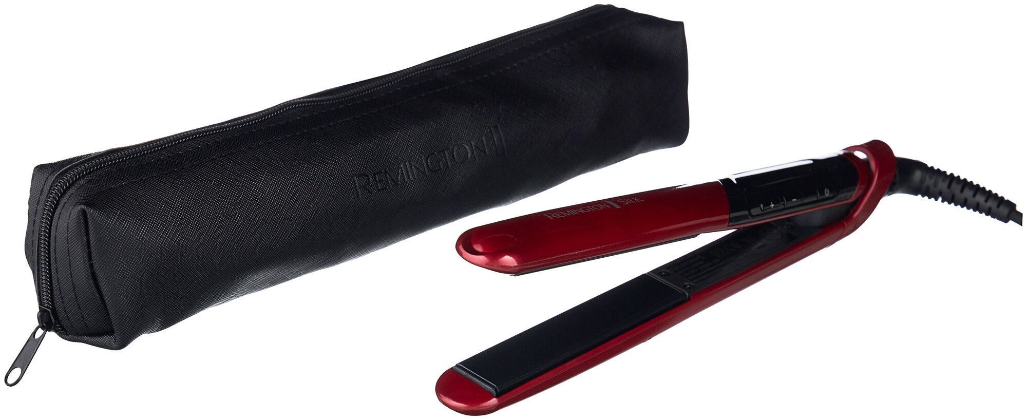Купить Выпрямитель для волос Remington Silk S9600, цифровой контроль температуры, функция TurboBoost, функция памяти, готовность к работе за 10 секунд, автоматическое отключение, красный/черный