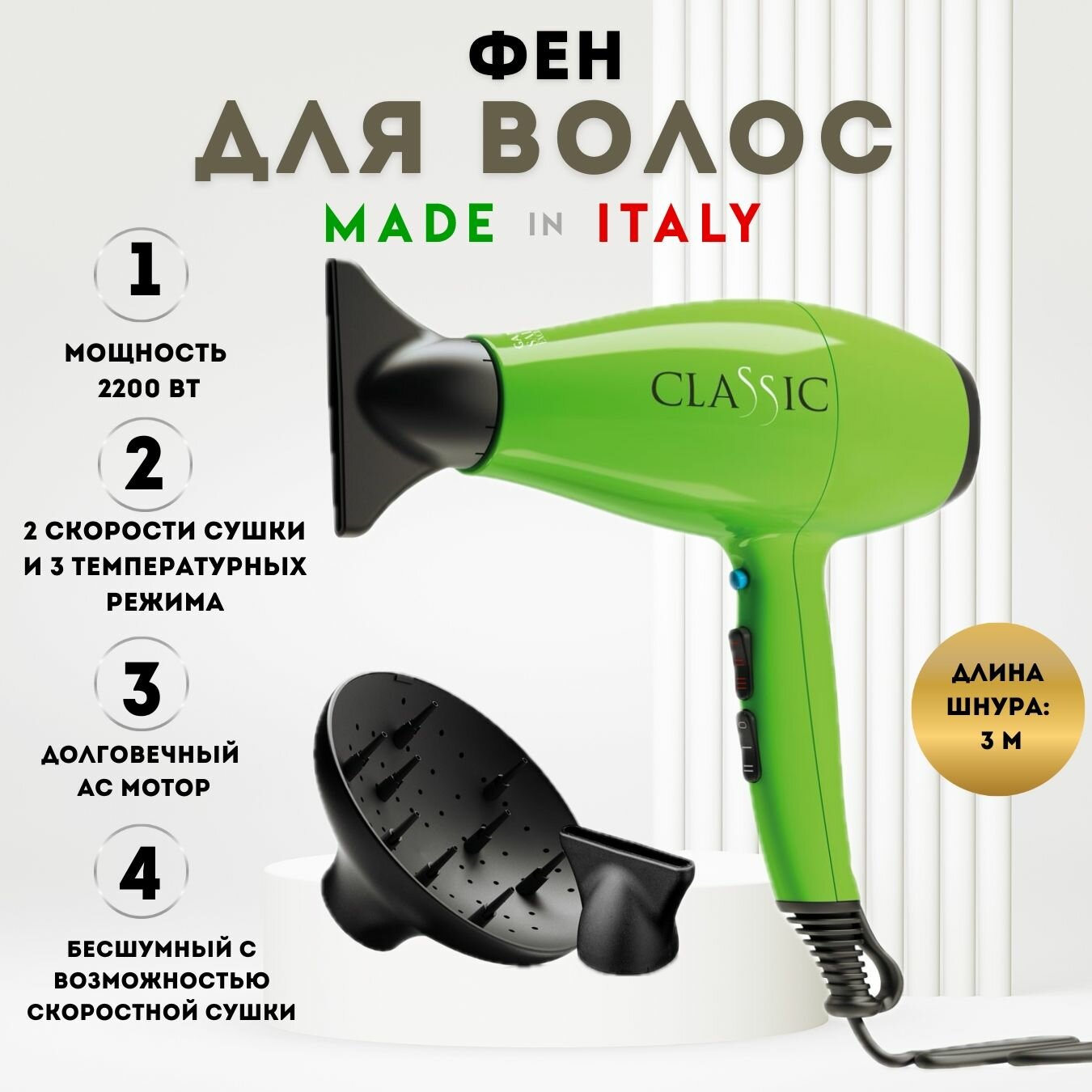 Профессиональный фен для волос Ga.Ma Classic, изумрудный, диффузор в комплекте, 2200 Вт