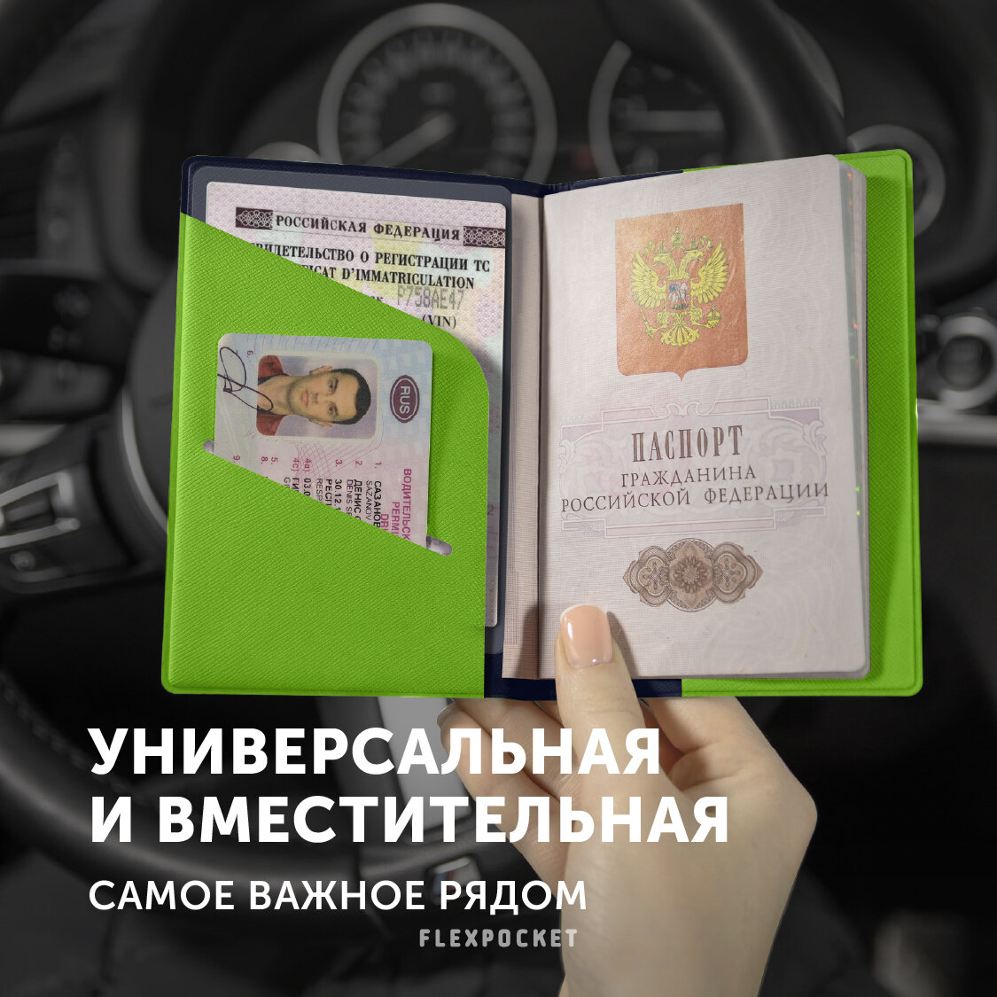 Обложка для паспорта Flexpocket с отделениями для документов (снилс, прав) из экокожи Saffiano, цвет Зеленый