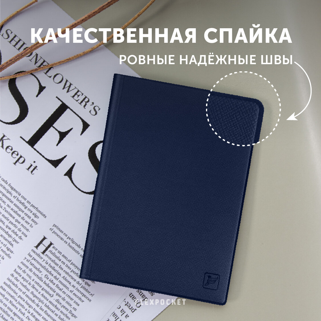 Обложка для паспорта Flexpocket с отделениями для документов (снилс, прав) из экокожи Saffiano, цвет Синий