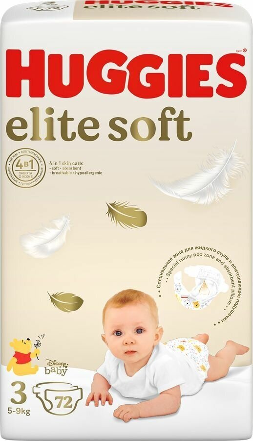 Huggies подгузники Elite Soft 3 (5-9 кг), 72 шт., 72 шт., 3, 5 - 9 кг