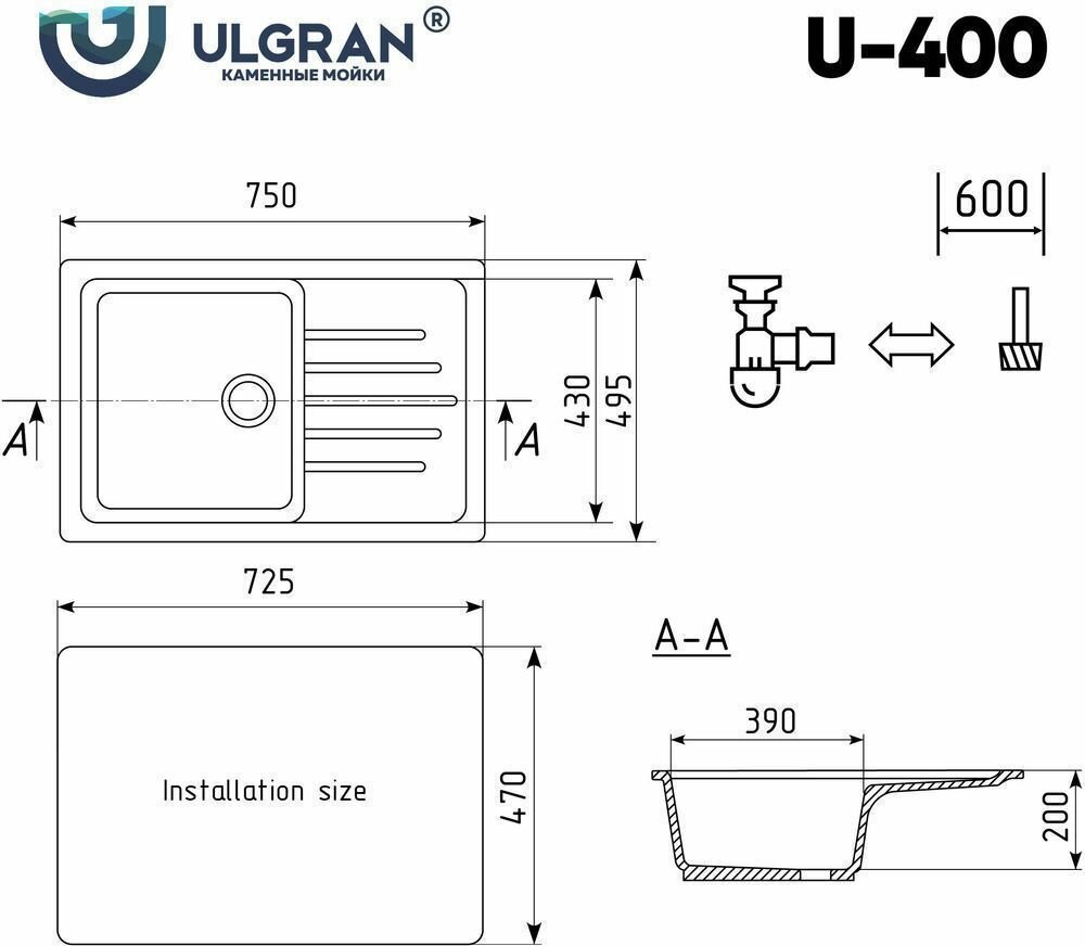 Мойка Ulgran Classic ультра-черный (U-400-344)