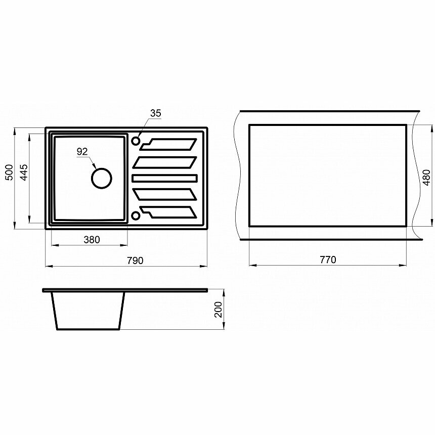 | Плюсы: | Мойка классная, красивая приятная на ощупь, не шумная, очень вместительная, большое крыло для сушки посуды, есть намеченные места для отверстия под кран. |