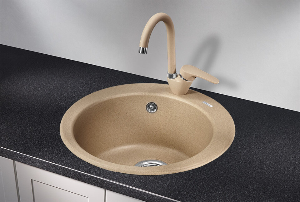 Кухонная мойка кварцевая Granula GR-4801 односекционная круглая, врезная, чаша D 370, цвет песок (4801sa)