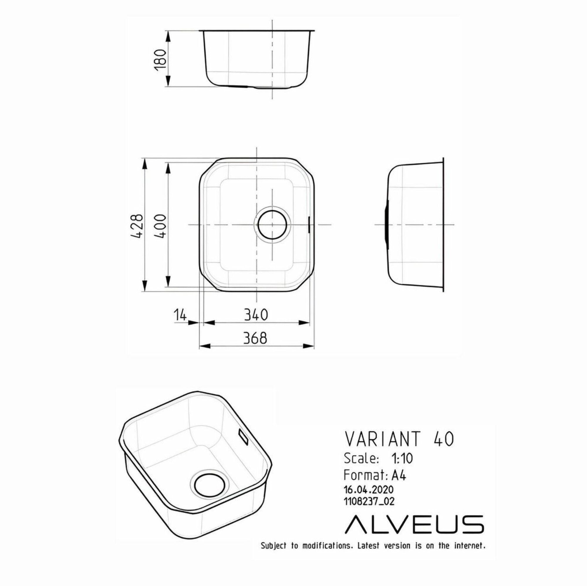 Мойка для кухни 400x340 мм, нержавеющая сталь, ALVEUS VARIANT 40 1113589