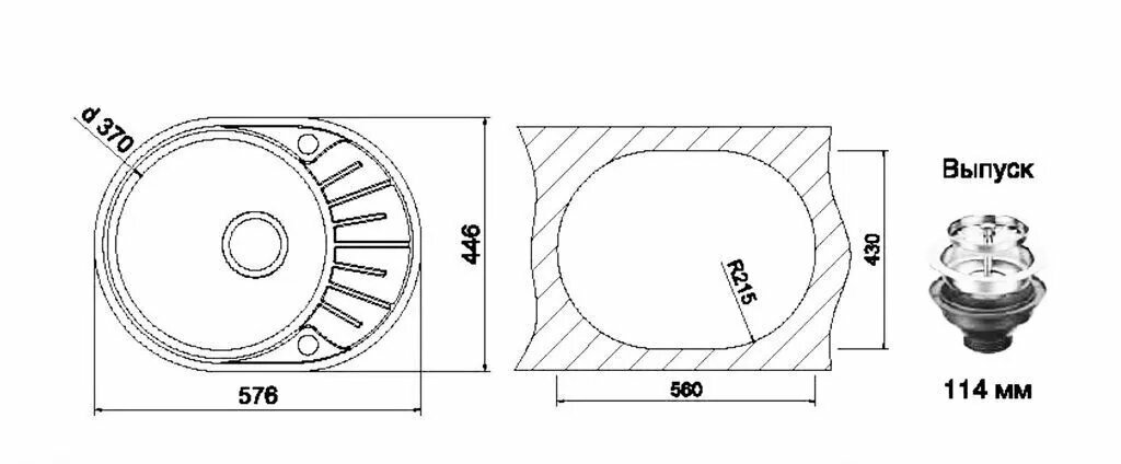 Мойка для кухни из нержавеющей стали Oulin / Оулин OL-R101 круглая с крылом сатин 57.6х44.6см глубина 17.8см / раковина кухонная врезная