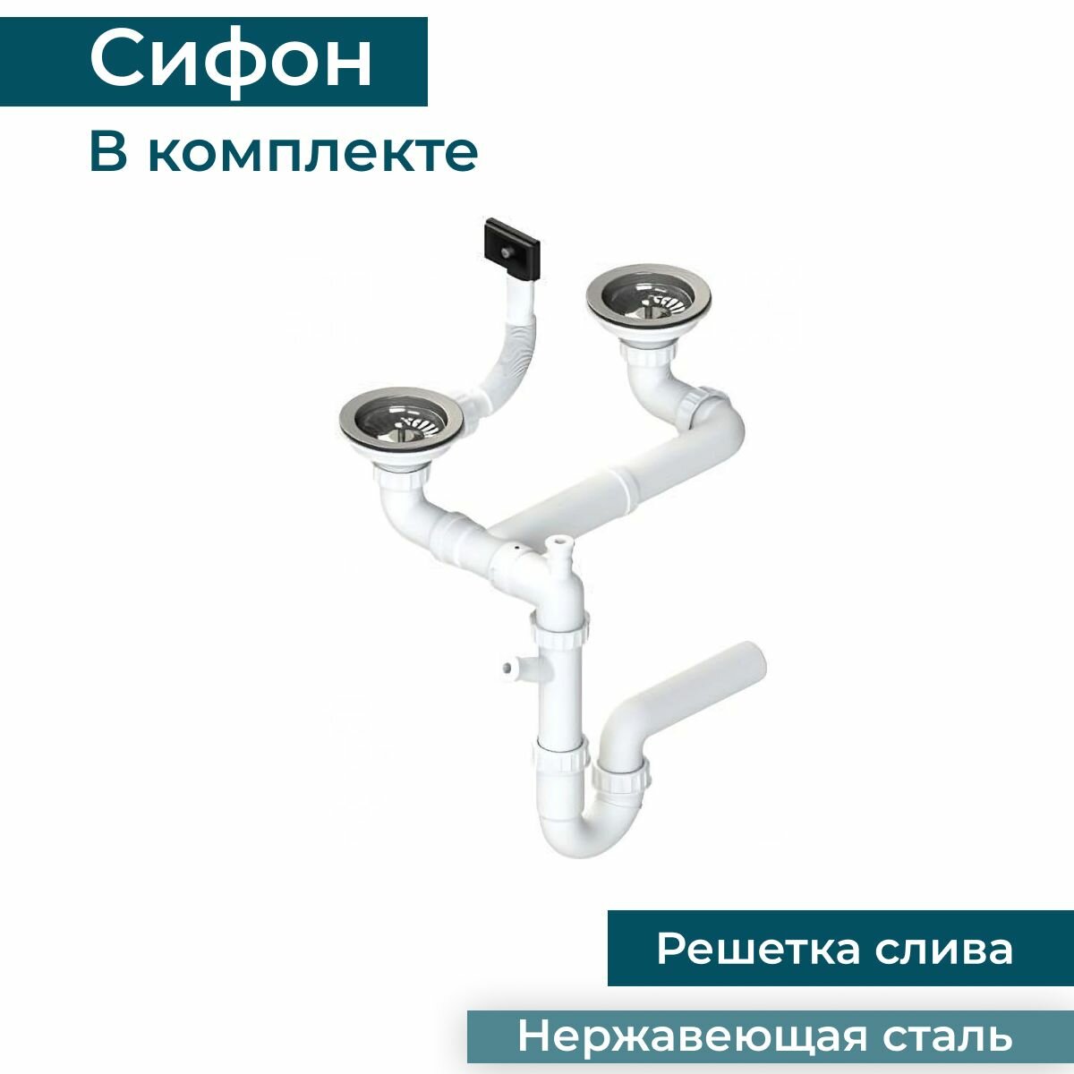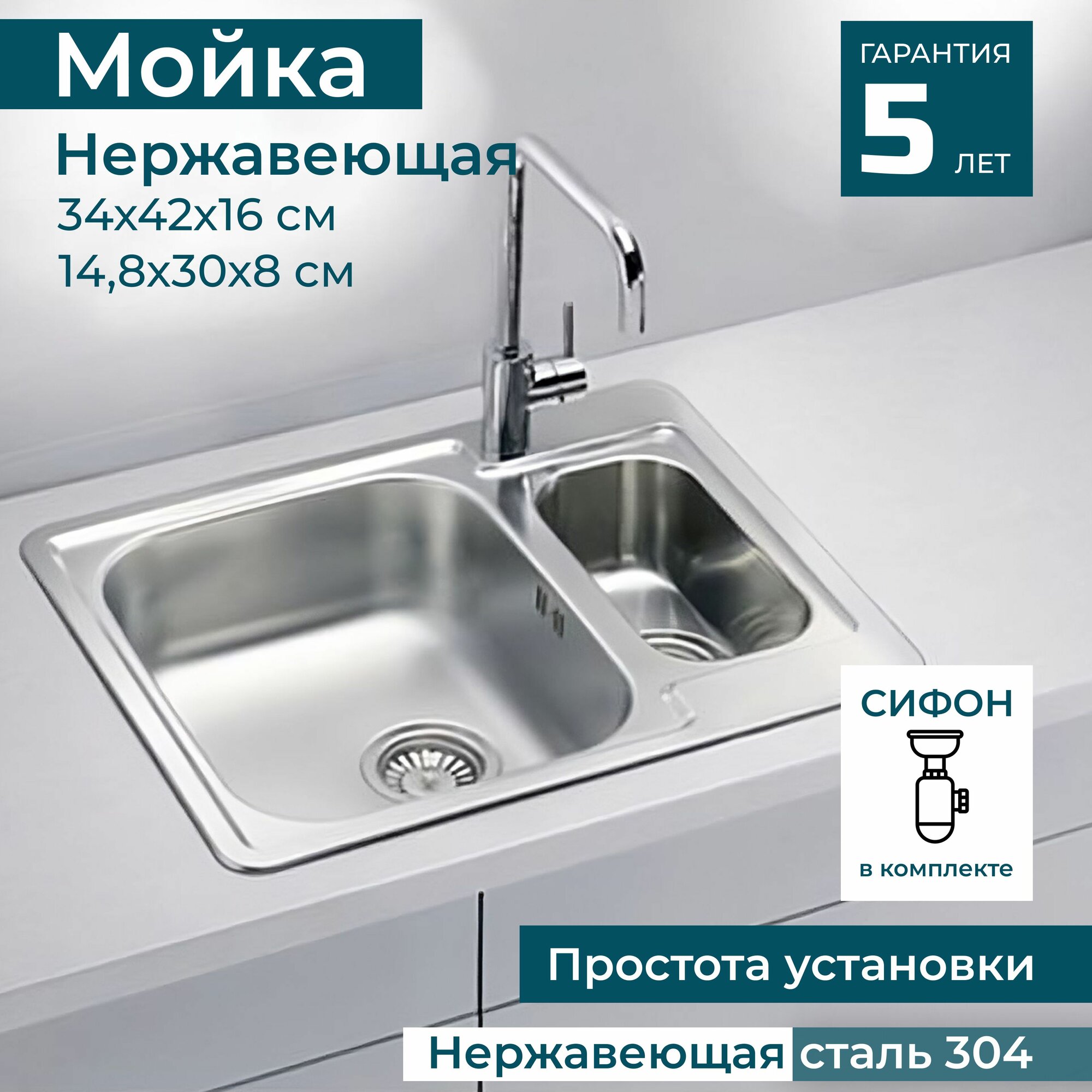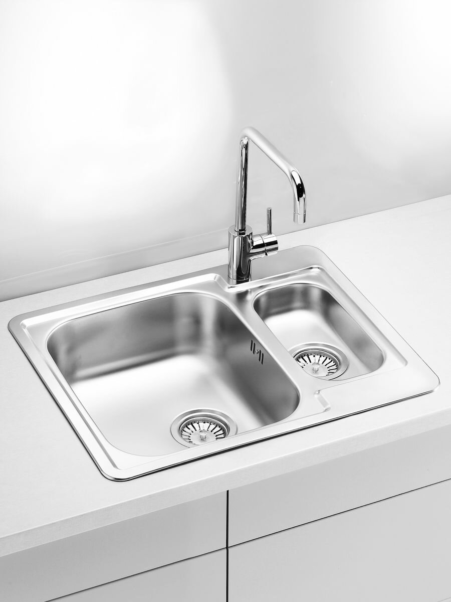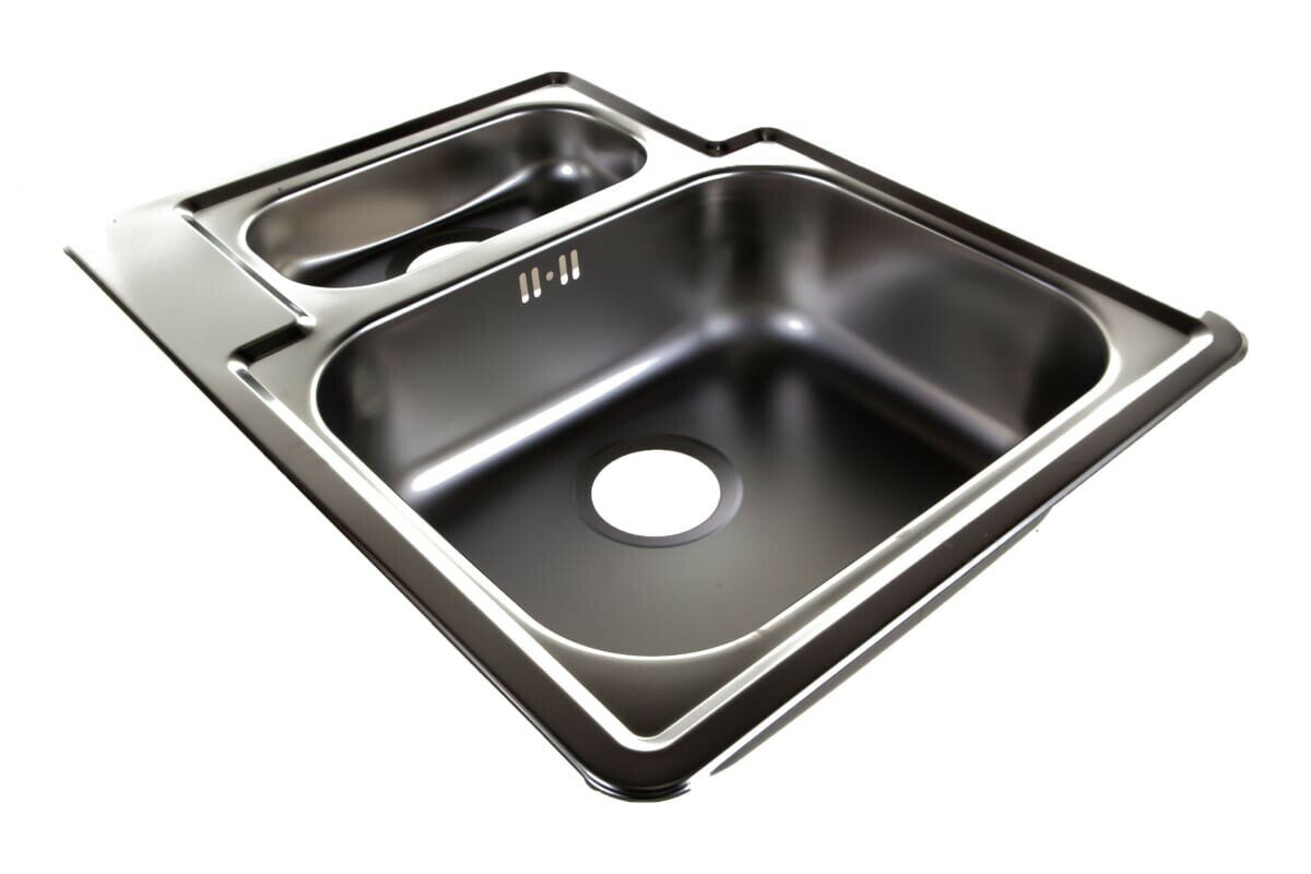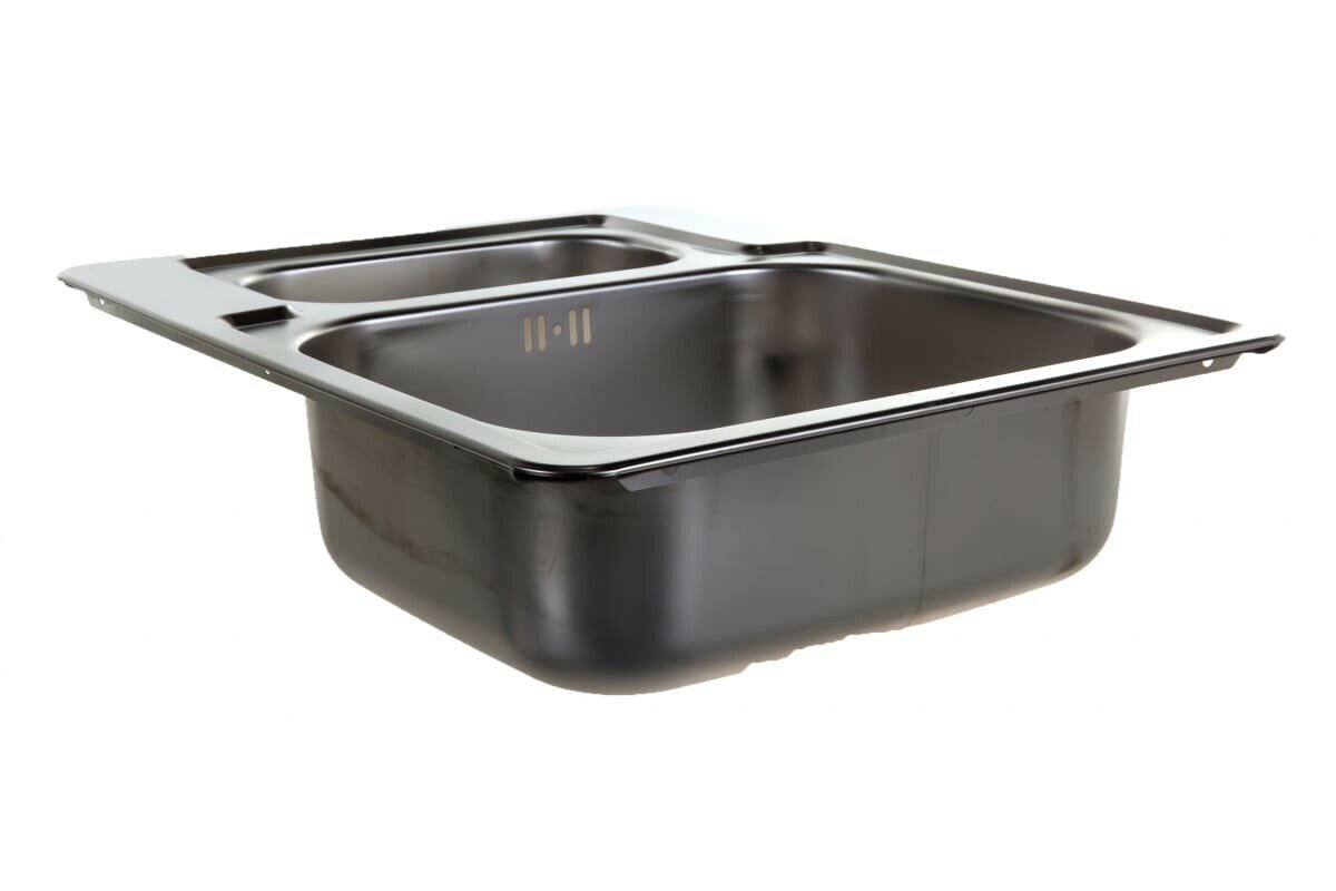 Мойка двойная для кухни врезная из нержавеющей стали ALVEUS LINE 50 NAT-90 61,5х50 см с узкой чашей в комплекте с сифоном. Цвет серый металлик