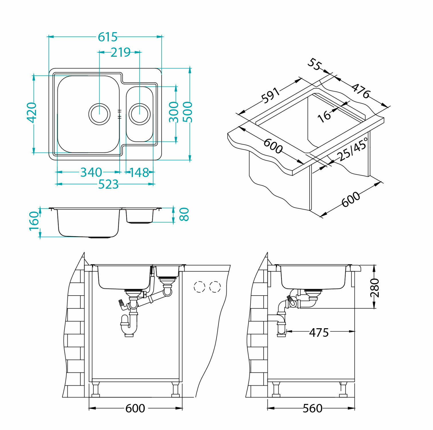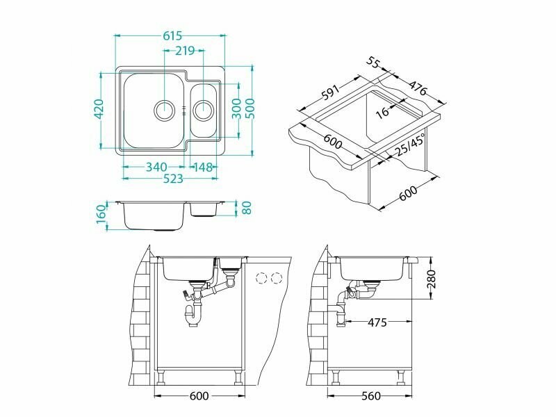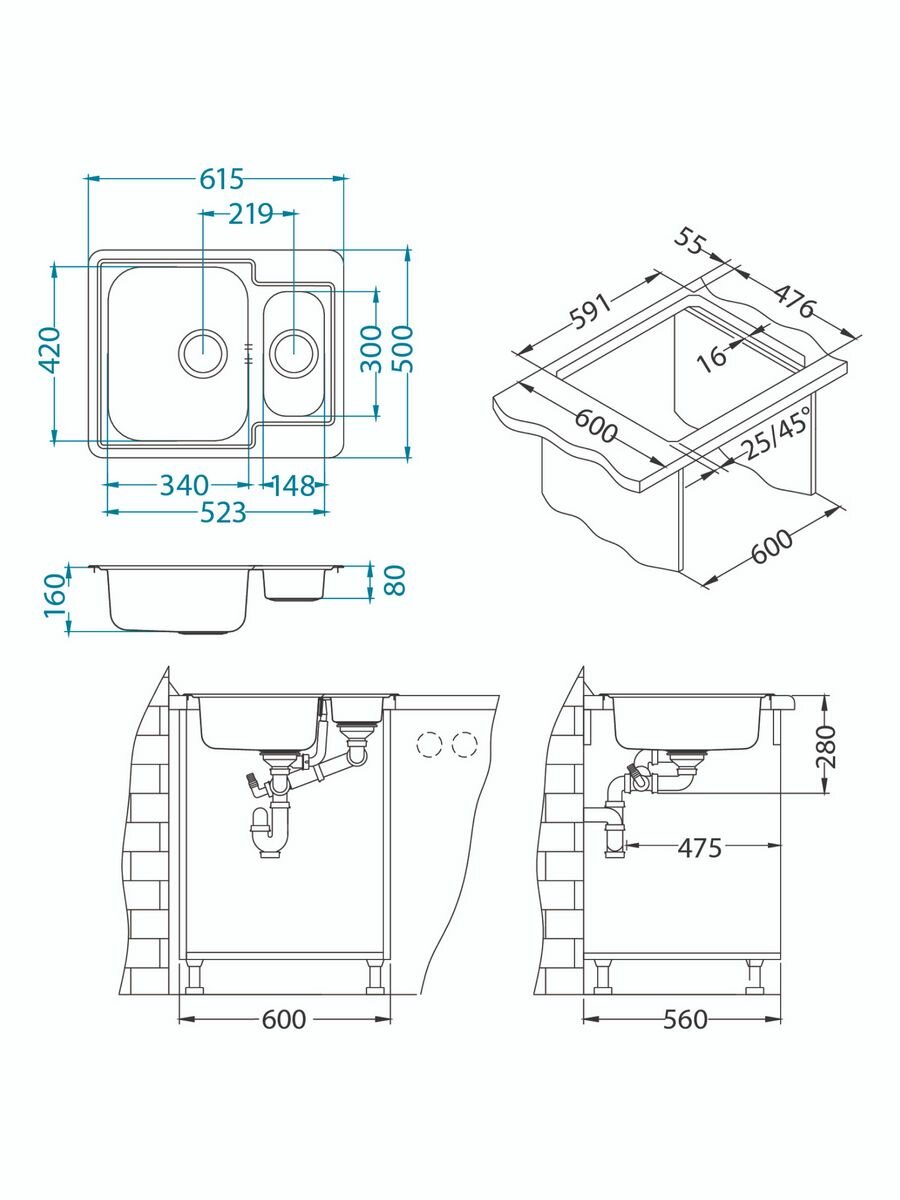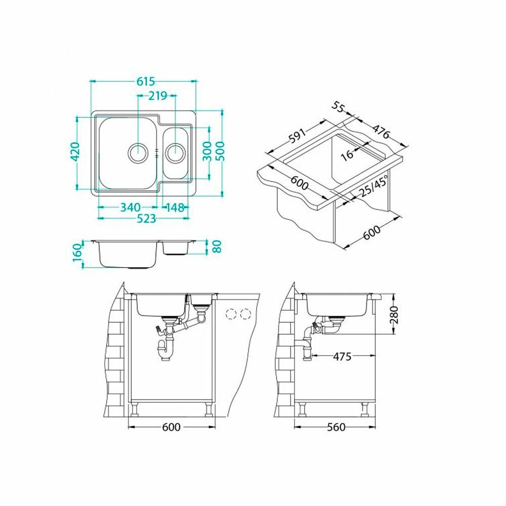 Врезная кухонная мойка LEX Maury 510