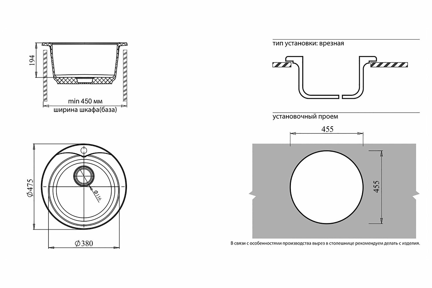 | Минусы: | нет ликала для вырезки в столешнице. |