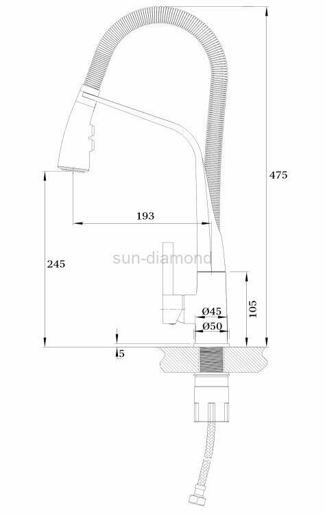 GZ16028 Смеситель для кухни, одно рычажный, с гибким пружинным изливом GANZER GZ16028, цвет хром