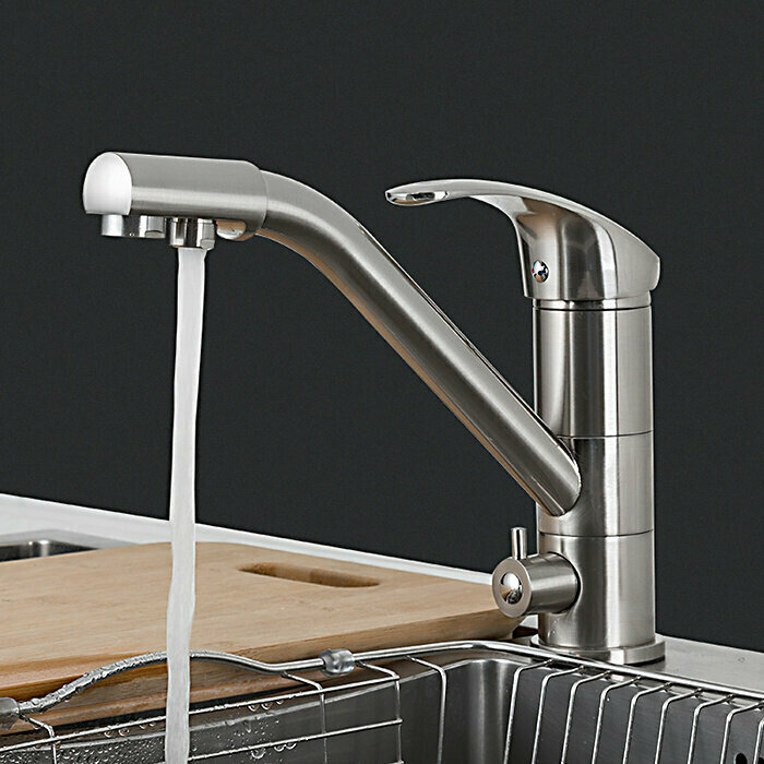 Смеситель Haiba HB4321-5 для кухни с подключением фильтра питьевой воды, сатин