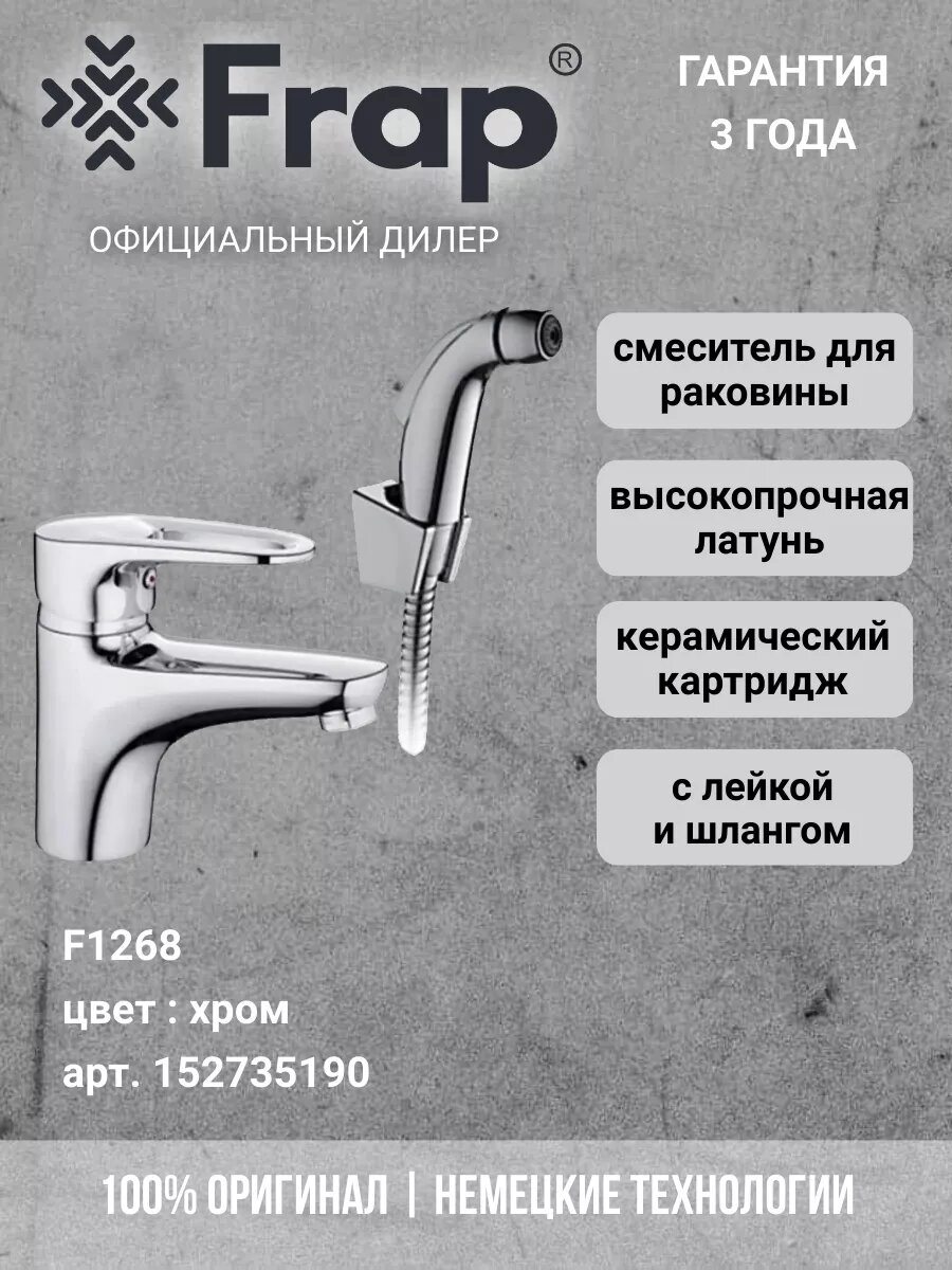 Смеситель FRAP F1268 для раковины, умывальника с гигиеническим душем, в ванную, латунь/хром