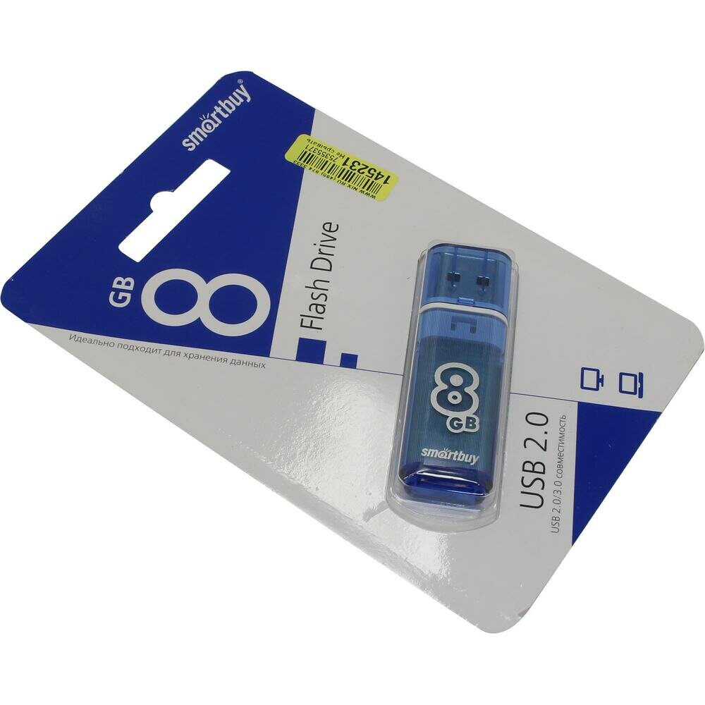 Флеш-диск 8 GB, SMARTBUY Glossy, USB 2.0, синий, SB8GBGS-B В комплекте: 1шт.