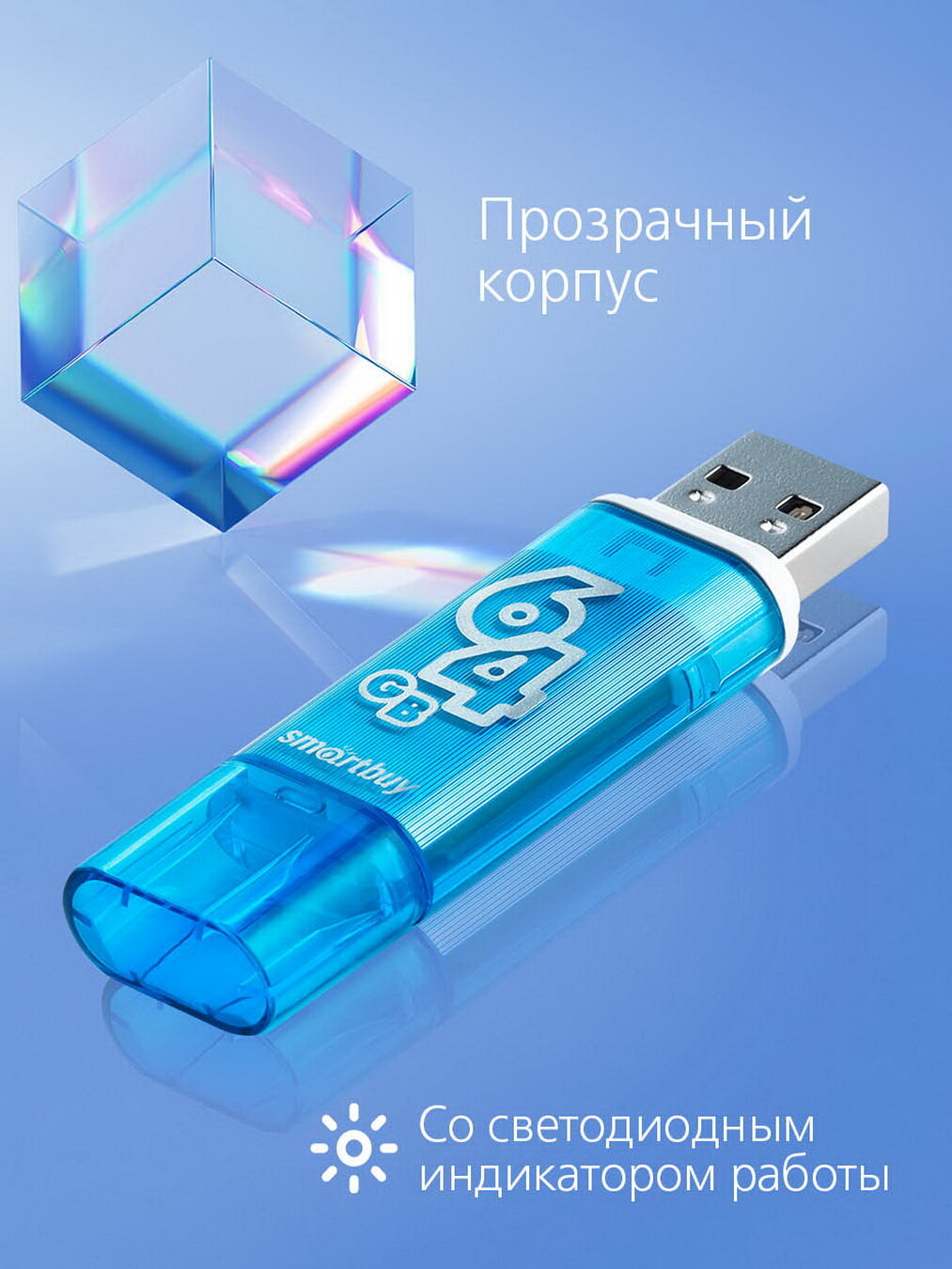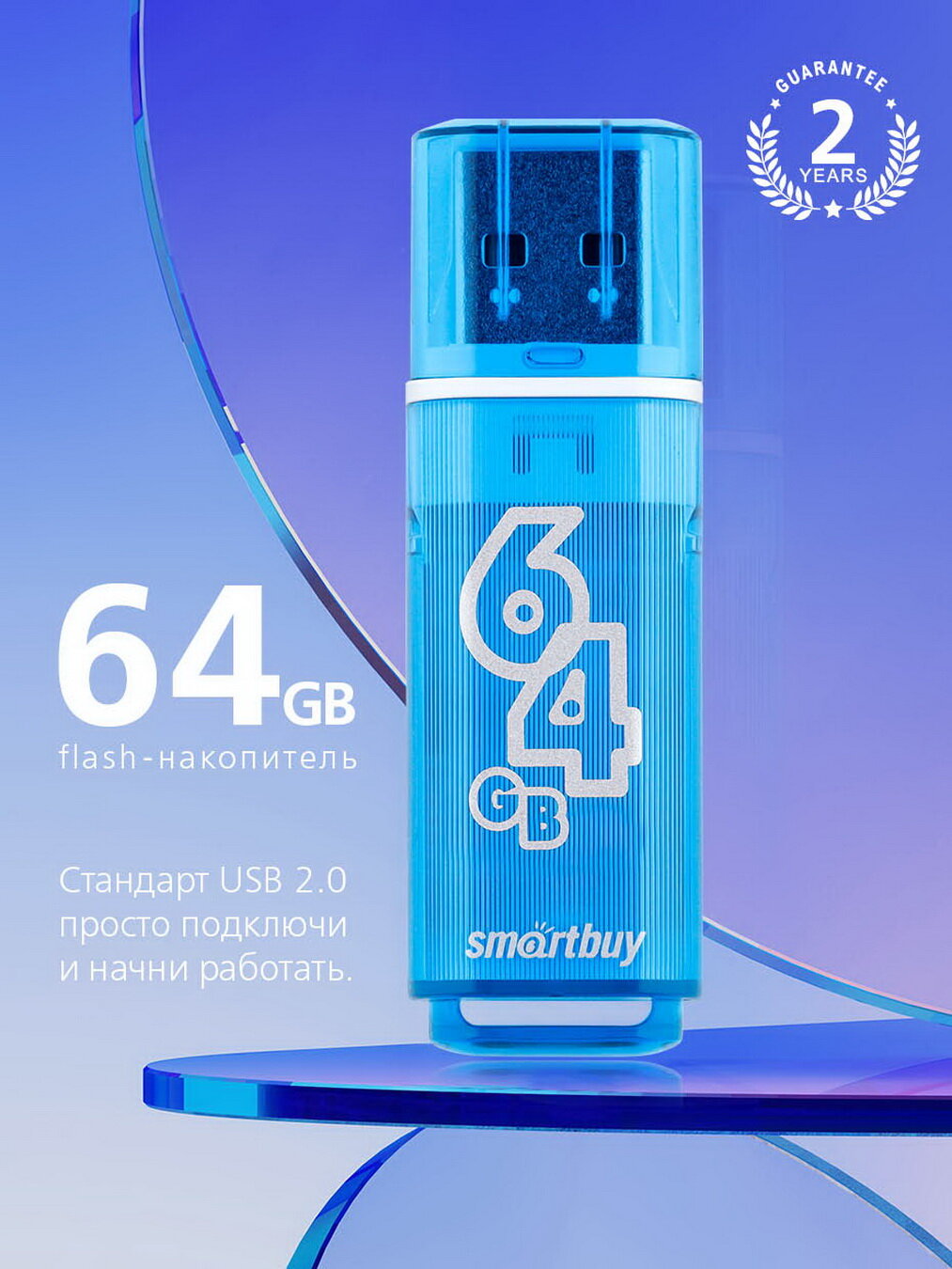 2 шт. Память Smart Buy "Glossy" 64GB, USB 2.0 Flash Drive, голубой