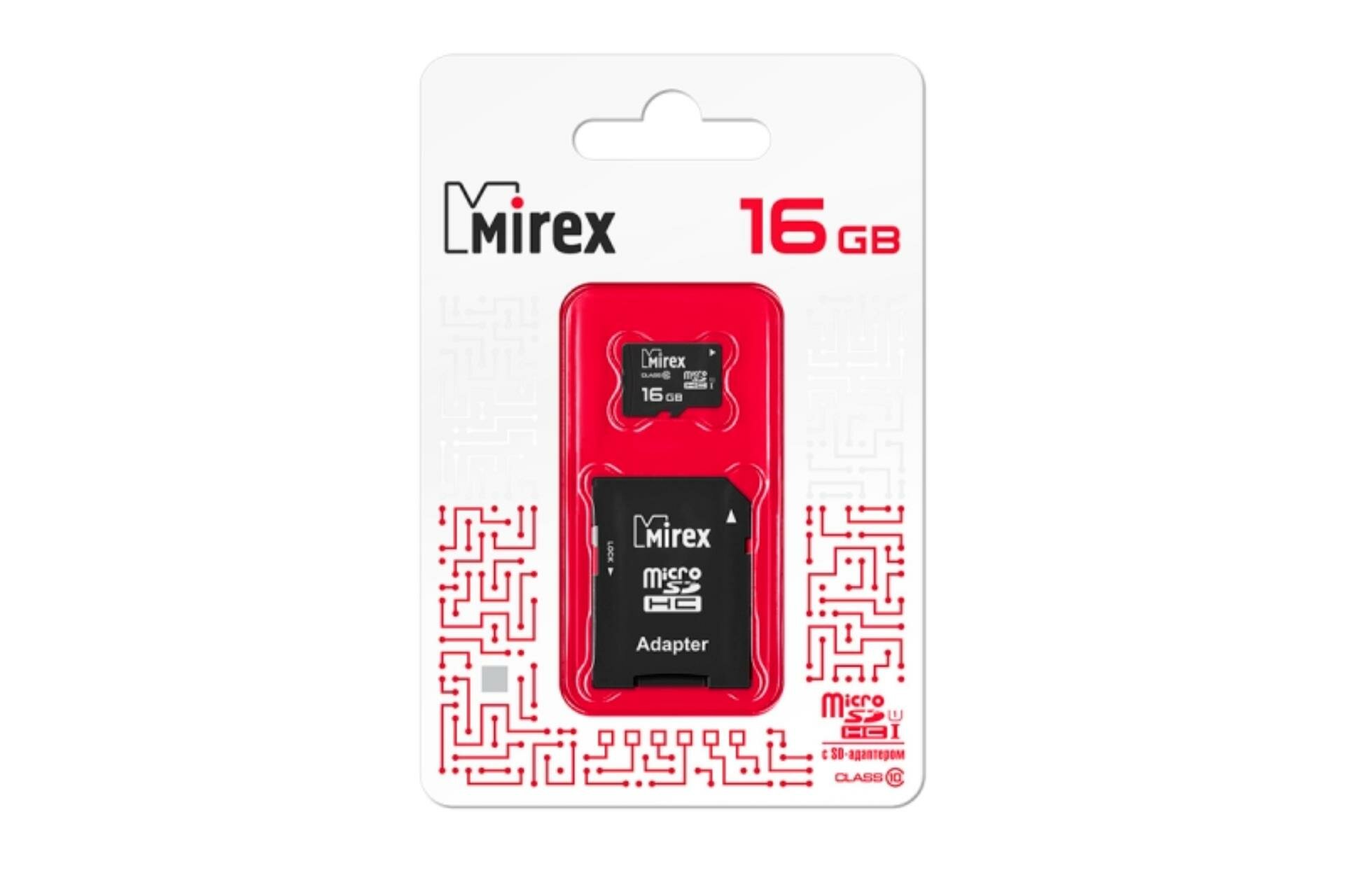 Карта памяти Mirex microSD, 16 Гб, SDHC, UHS-I, класс 10, с адаптером SD Mirex 4245643 .