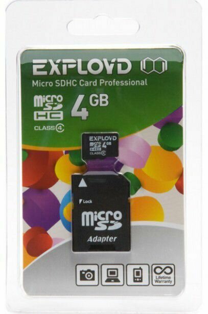 Купить EXPLOYD MicroSDHC 4GB Class4 + адаптер SD [EX004GCSDHC4-AD] (Карта памяти)