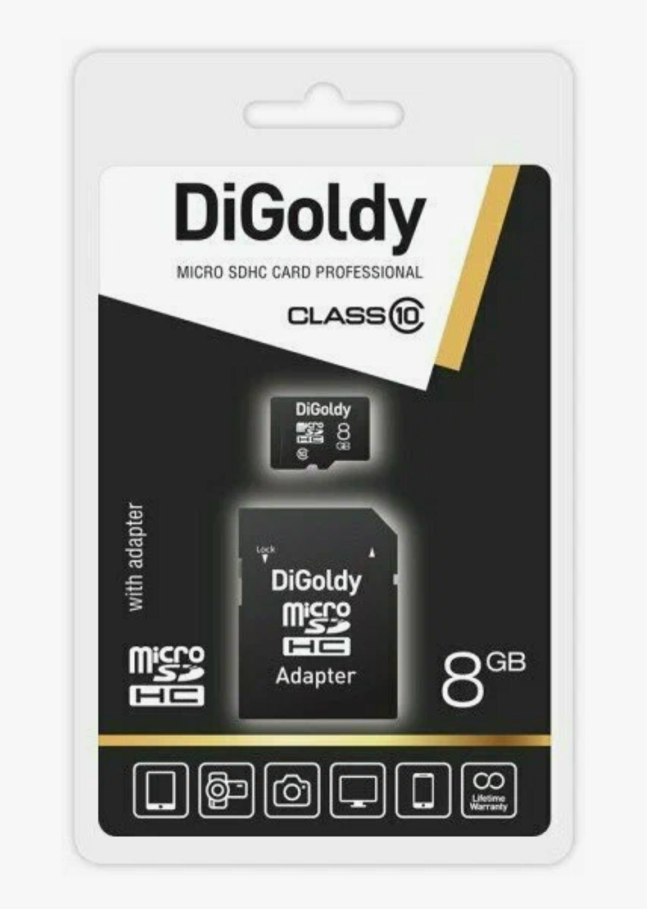 Карта памяти Micro 8 ГБ, DiGoldy Class 10 + SD адаптер / DG008GCSDHC10-AD