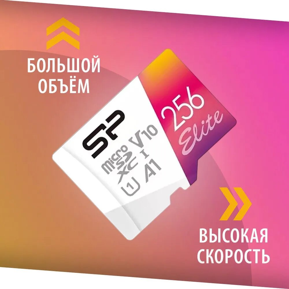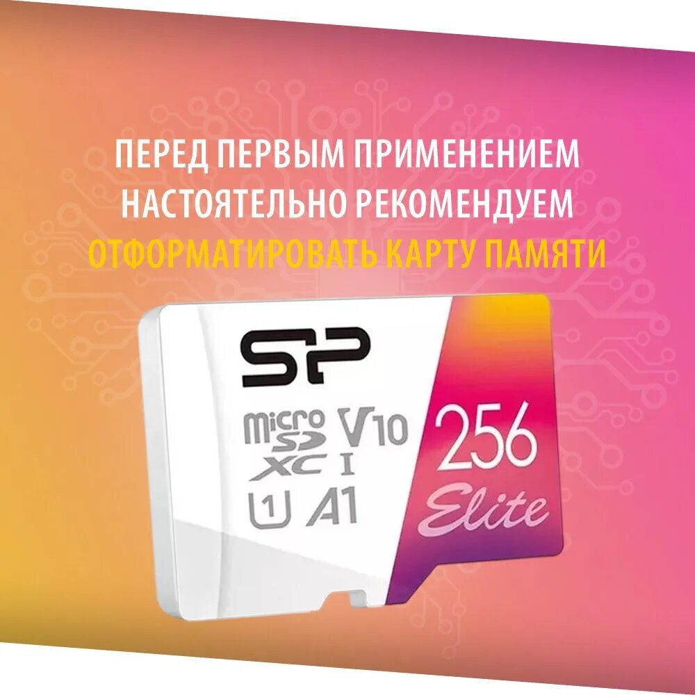 Флеш карта microSD 256GB Silicon Power Elite microSDHC Class 10 Uhs-i (SD адаптер) Colorful Sp256gbs .