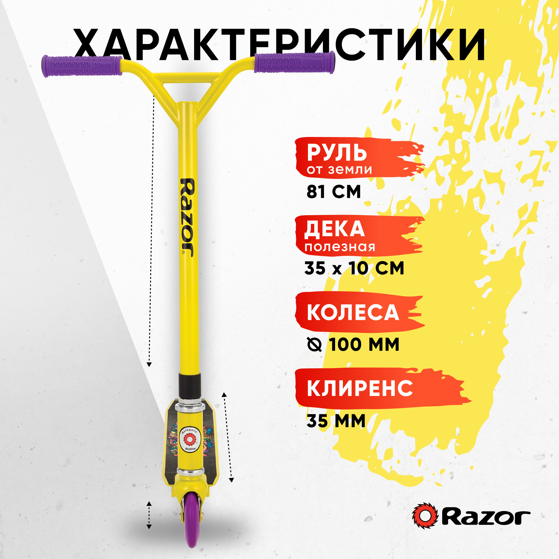 Самокат трюковой детский RAZOR Beast жёлтый - для трюков и прыжков экстремальный для начинающих