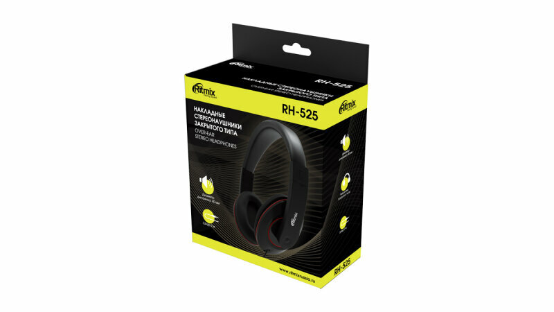 Купить Наушники Ritmix Rh-525, полноразмерные, 99 дБ, 32 Ом, 3.5 мм, 2 м, черные 4424515 Ritmix