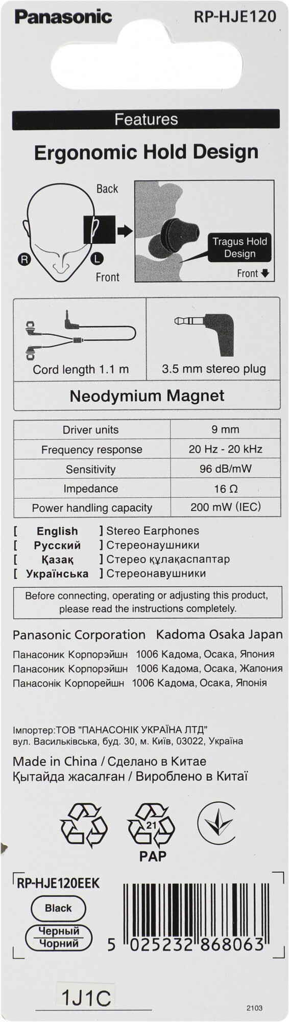 Panasonic RP-HJE120EEK (Наушники)