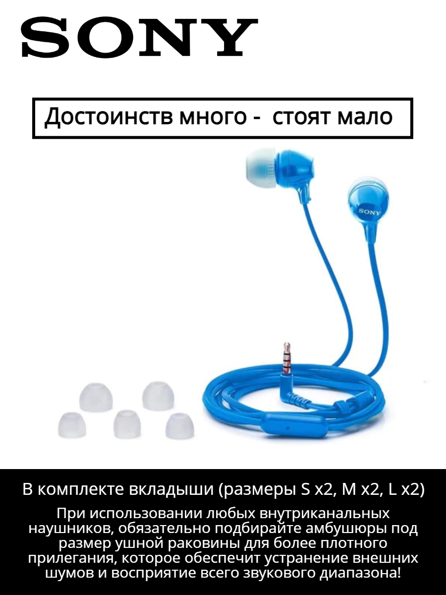 СохранитьНаушники с микрофоном Sony MDR-EX15APLI, синий. Оригинал. интересное: