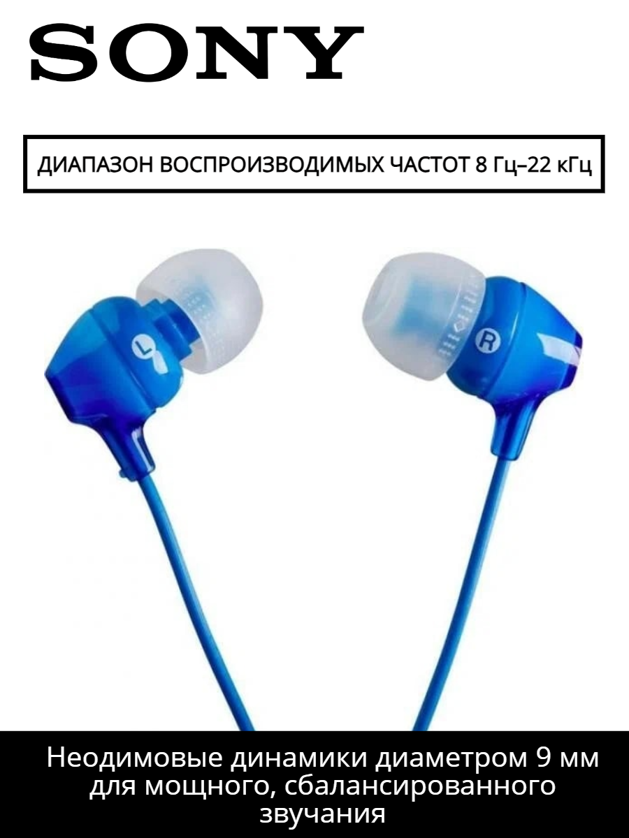 Наушники SONY MDR-EX15AP/LI проводные, вакуумные, 1,2м, синий