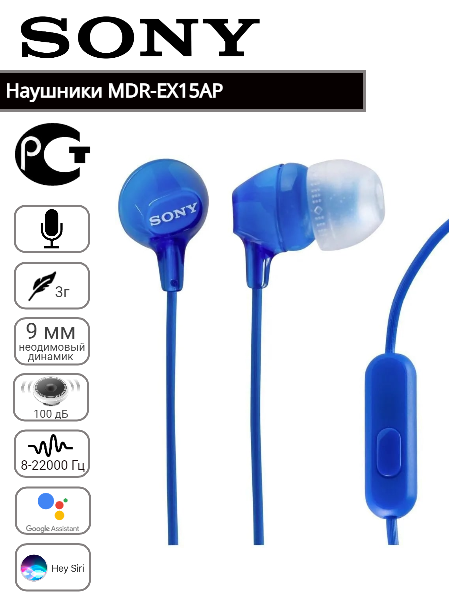 Проводные наушники Sony MDR-EX15AP RU, синий