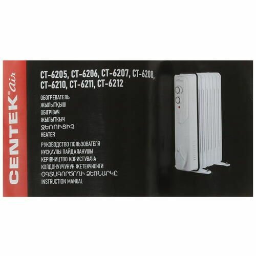 Обогреватель электрический масляный CENTEK CT-6205: белый, 7 секций, 15м2, 1500Вт, 3 режима, защита от перегрева, терморегулятор, LED-индикатор