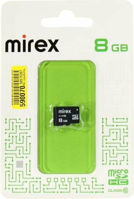 Карта памяти Mirex microSDHC 8 GB Class 10 R/W 25/10 МБ/с (13612-MC10SD08)