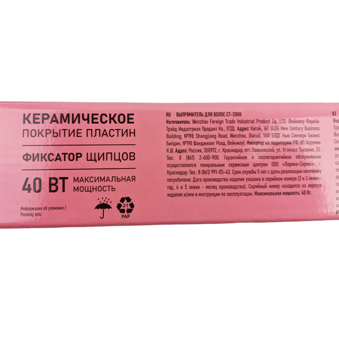 Выпрямитель для волос CT-2008 40Вт, керамические пластины 90х26мм, Ультрагладкая керамика,LED индикатор